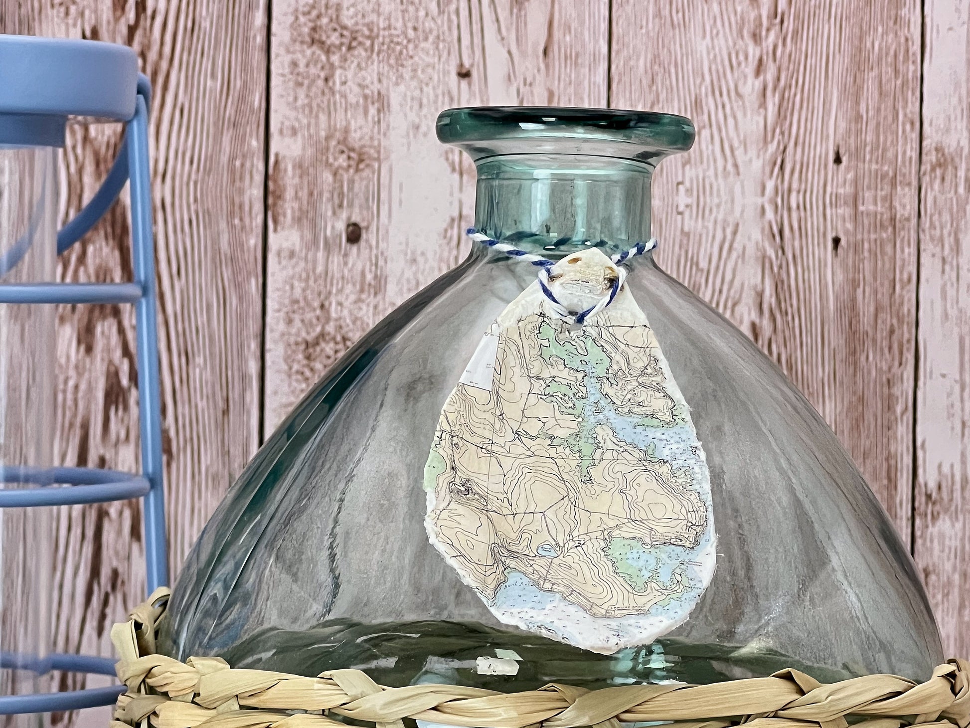 Add a piece of Maine’s coastline to your home with this beautifully decoupaged scallop shell, featuring the timeless elegance of an East Lamoine and Marlboro nautical map.